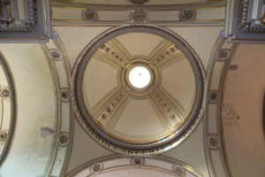 La pianta della chiesa è a croce greca, con absidi e cappelle collocate agli angoli: un’impostazione che crea uno spazio centrato, governato dalla cupola. Al cuore dell’edificio, una cupola emisferica domina l’incrocio dei bracci, mentre le volte a botte e le ampie finestre semicircolari garantiscono una luminosità diffusa, che esalta la percezione degli spazi.