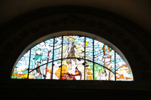 L’interno è arricchito da decorazioni a motivi floreali, nervature e fregi che donano movimento e solennità. La scelta decorativa non è solo estetica: accompagna lo sguardo del fedele e sottolinea la centralità liturgica dell’area presbiteriale.