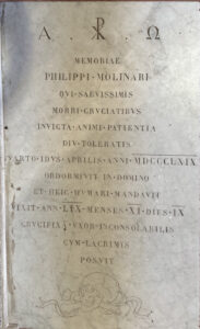 La scena, ambientata in un contesto architettonico ispirato all’antica Roma, raffigura la santa inginocchiata, con lo sguardo rivolto al cielo in atteggiamento di fede e accettazione. L’aguzzino, con la tenaglia, sta per infliggere la mutilazione: un momento drammatico che la pittura ottocentesca rende con teatralità e pathos, bilanciati dalla serenità del volto della santa.
