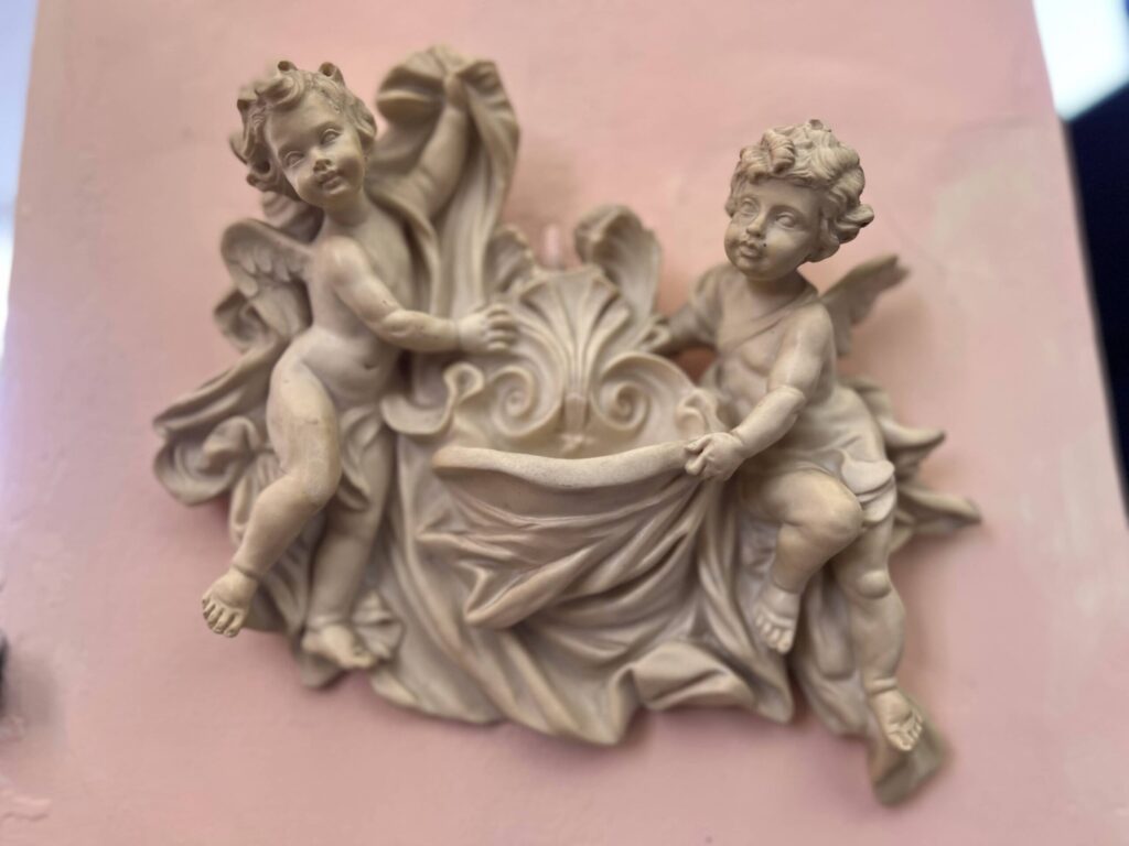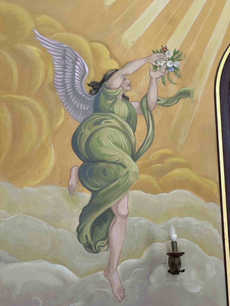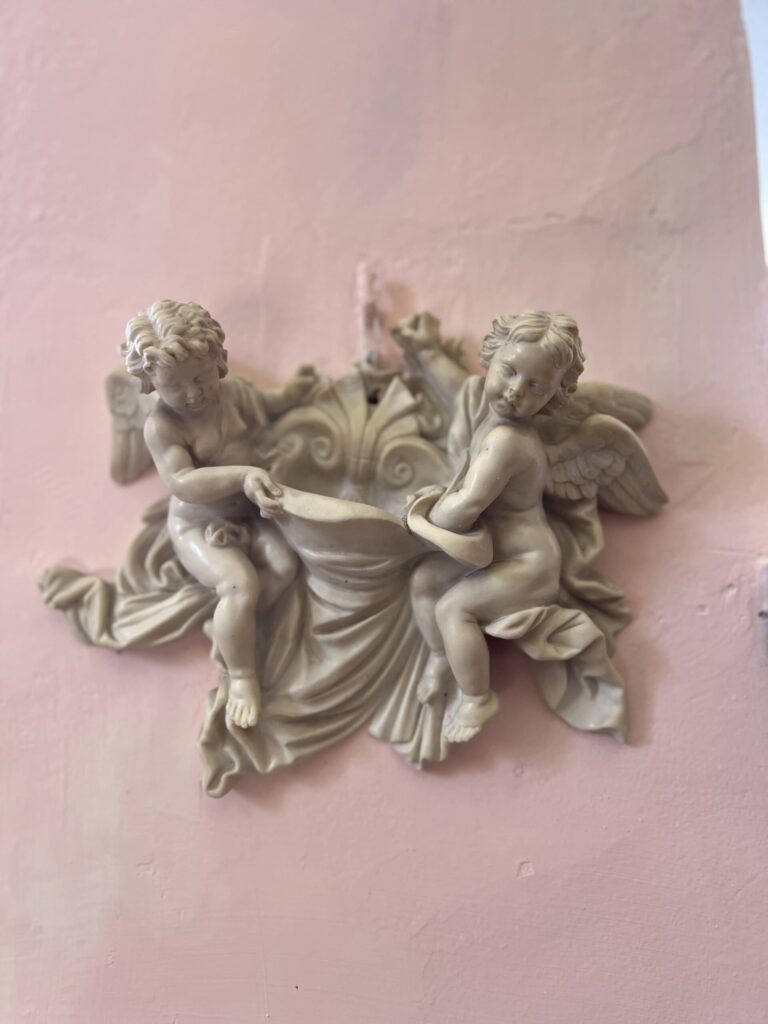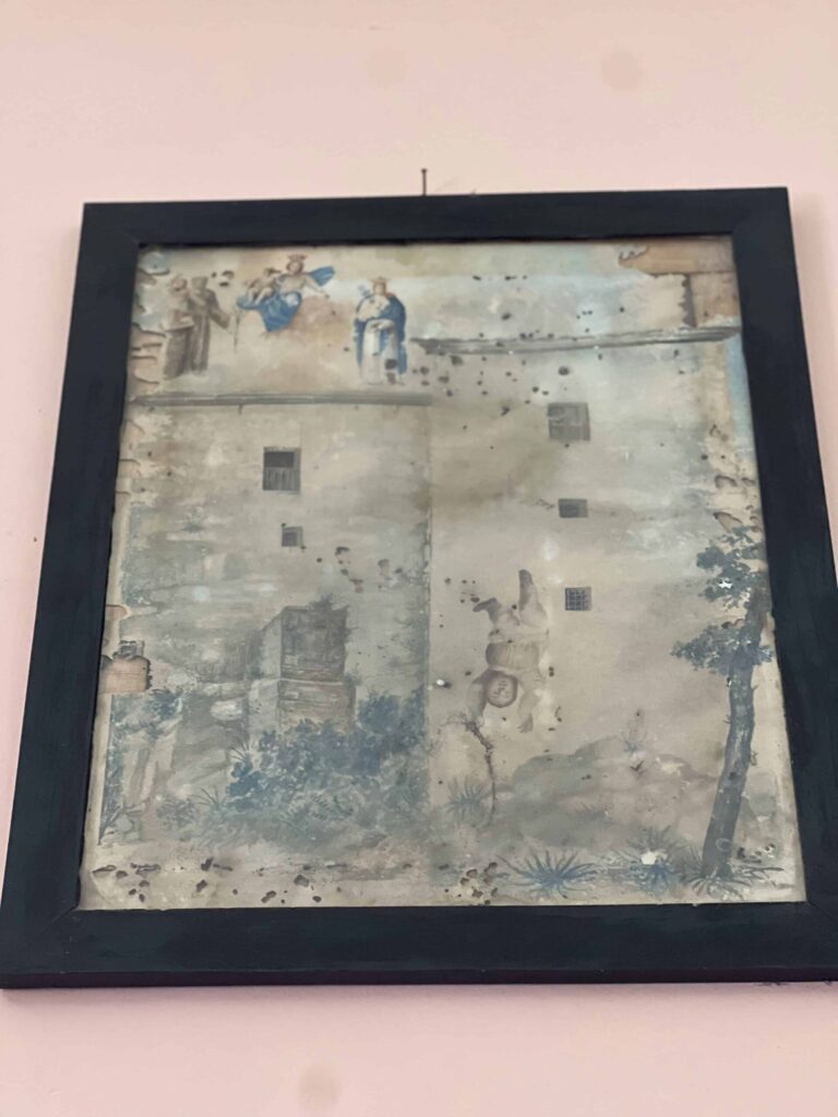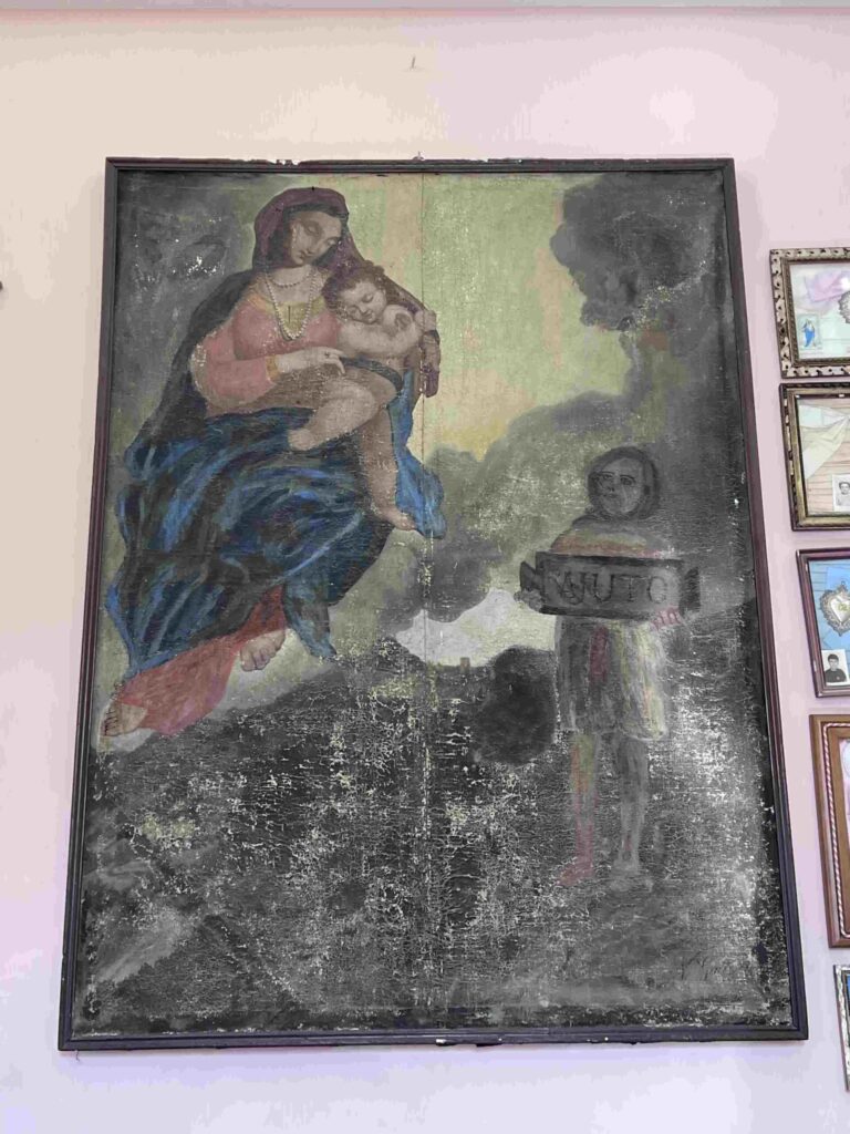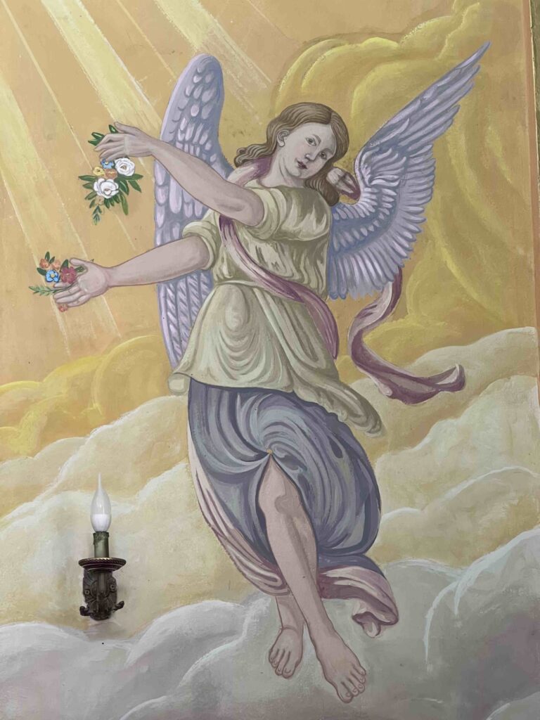 La chiesa custodisce anche dipinti antichi e immagini sacre, come la Madonna con Bambino e devoto su tela, segnato dal tempo ma ancora vivo nella sua espressività. Piccoli dettagli decorativi, come gli angioletti in rilievo, aggiungono un tocco di dolcezza e spiritualità.