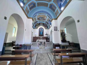 All’interno troviamo splendide statue votive e affreschi che raccontano con i colori della fede episodi della cristianità: