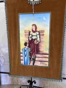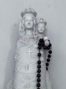Accanto a questa, un’altra scultura bianca in materiale ceramico ripropone la stessa figura, arricchita da un grande rosario. Entrambe le statue sono oggetto di venerazione e simbolo di protezione per chi varca la soglia della chiesa.