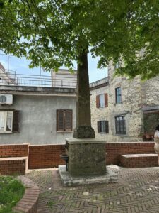 Un tempo, proprio nella piazza antistante, era presente anche una maestosa fontana del 1909, della quale restava memoria grazie a una lapide commemorativa. Oggi, al suo posto, si trova una nuova fontana, simbolo di continuità tra passato e presente, tra storia e vita quotidiana.