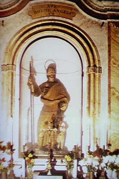 Nonostante le dimensioni ridotte e l’aspetto semplice, l’edificio custodisce al suo interno una profonda ricchezza storica e spirituale. Il protagonista assoluto è una statua di San Rocco, realizzata interamente da un tronco di ulivo e scolpita solo nella parte frontale. Questo dettaglio non è solo indice di una particolare tecnica artistica, ma anche esempio prezioso dell’artigianato locale, che nel tempo ha saputo fondere fede e creatività.