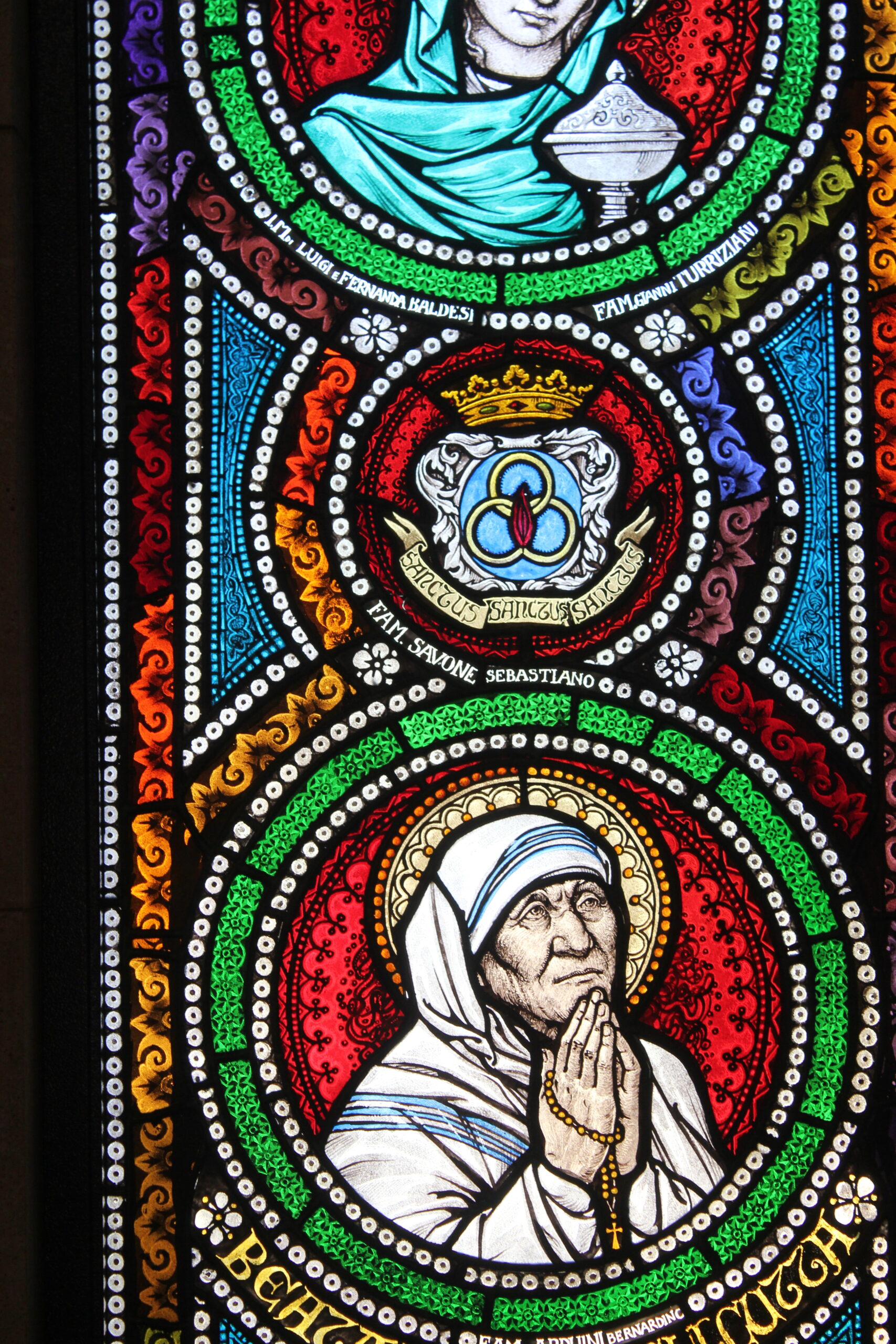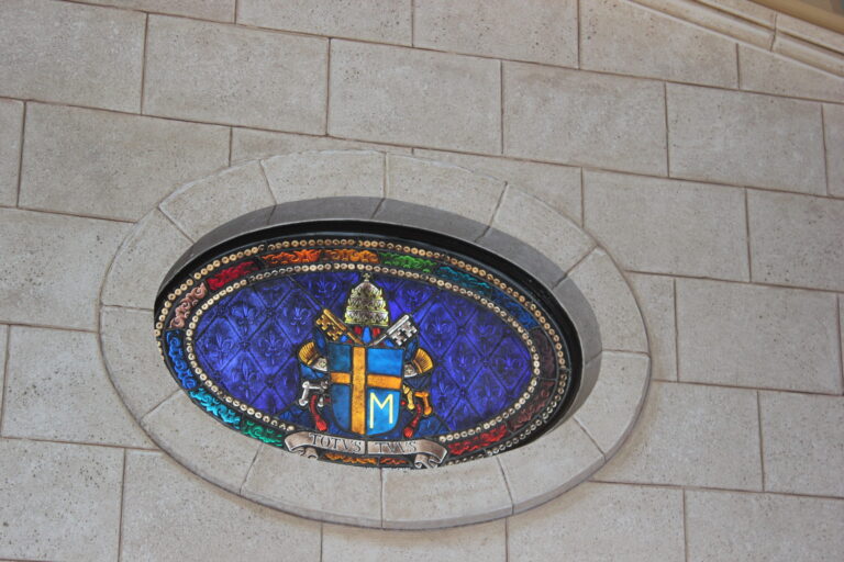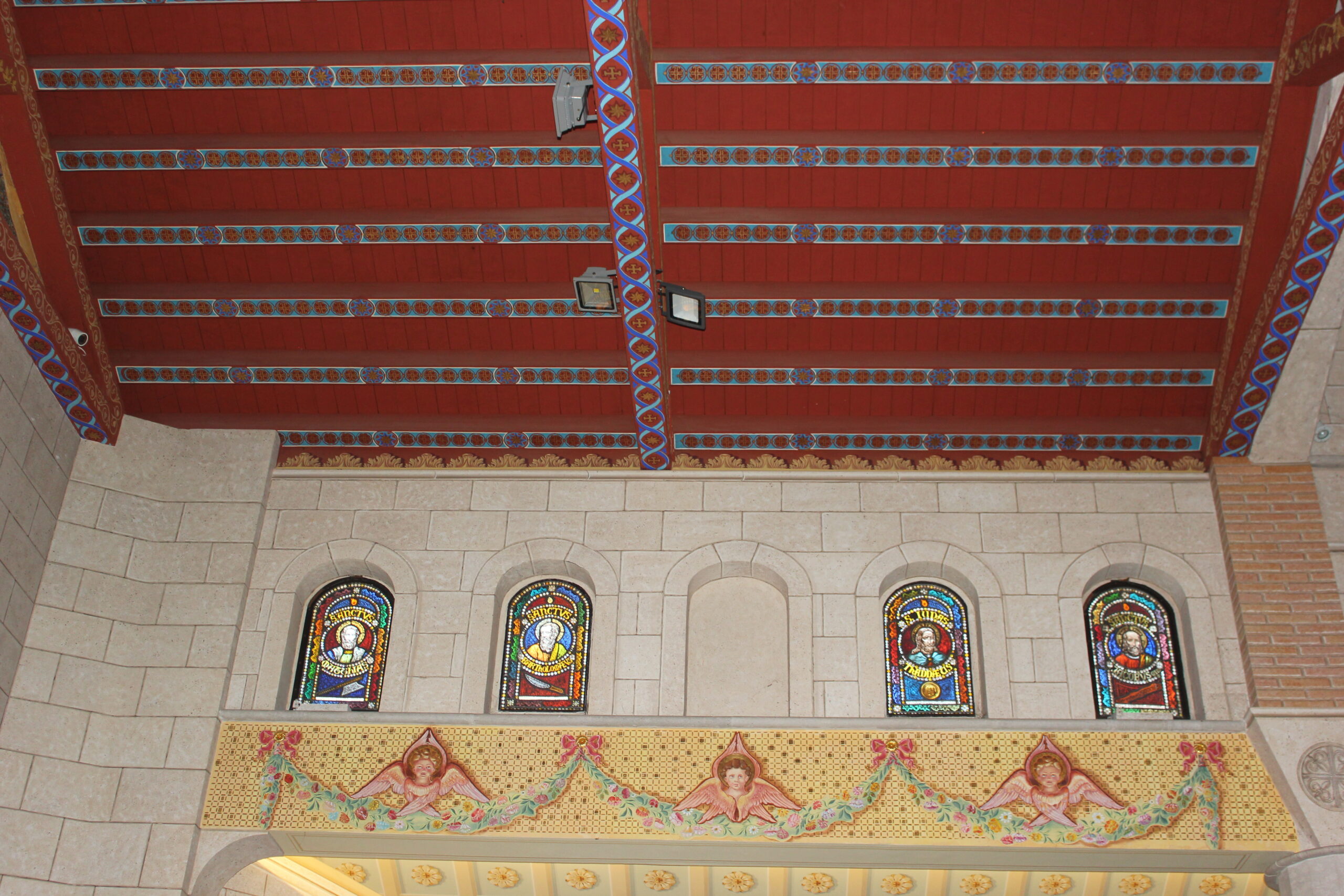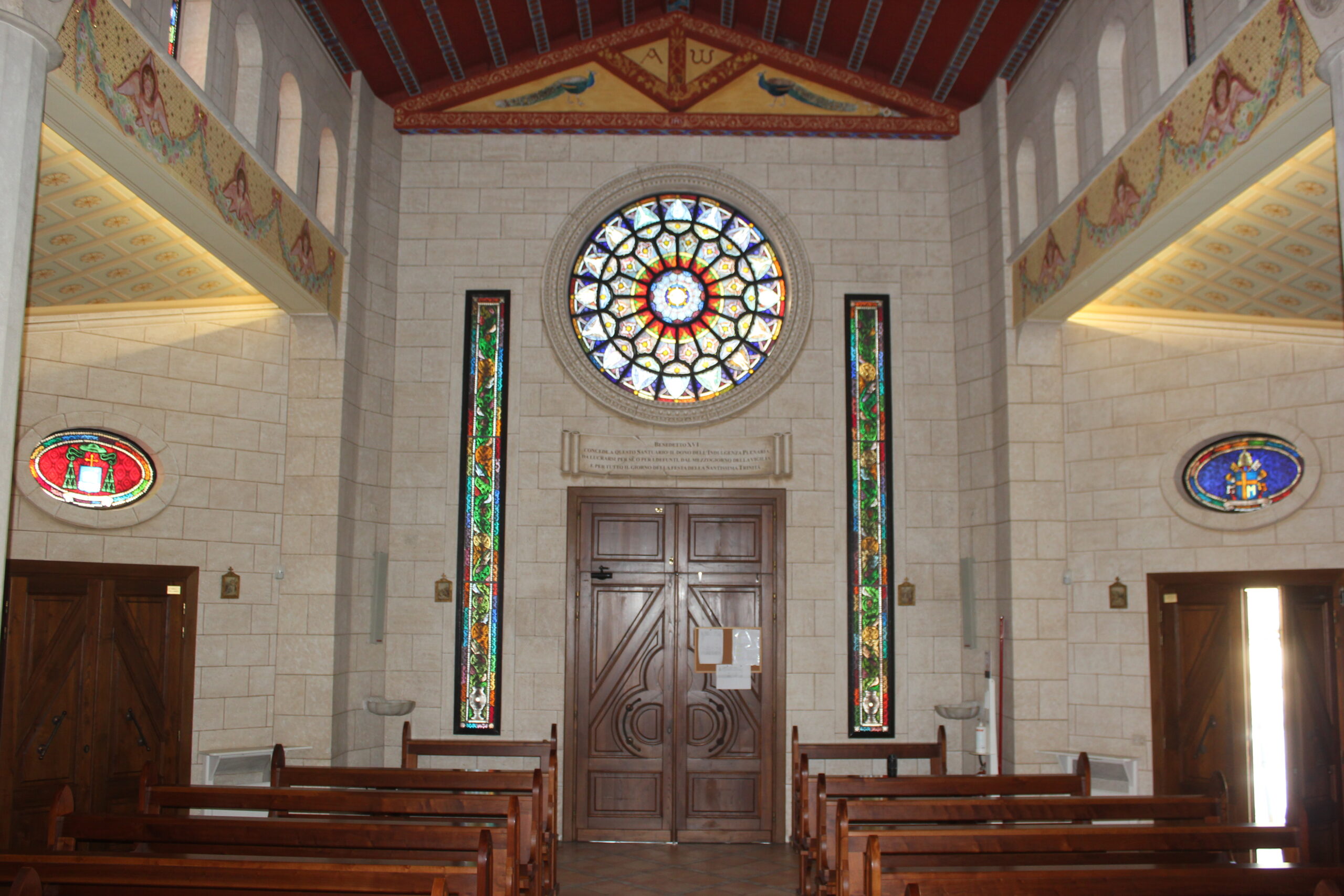 Furono realizzate 23 vetrate artistiche eseguite con fusione e ossidatura dei vetri dall’artista russo Piotr Merkury, definito maestro della luce, a cui l’università La Sapienza di Roma ha dedicato una sala, e dall’artista romana Barbara Farabecoli.